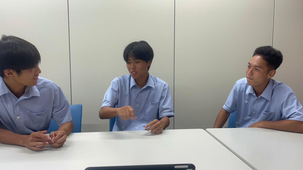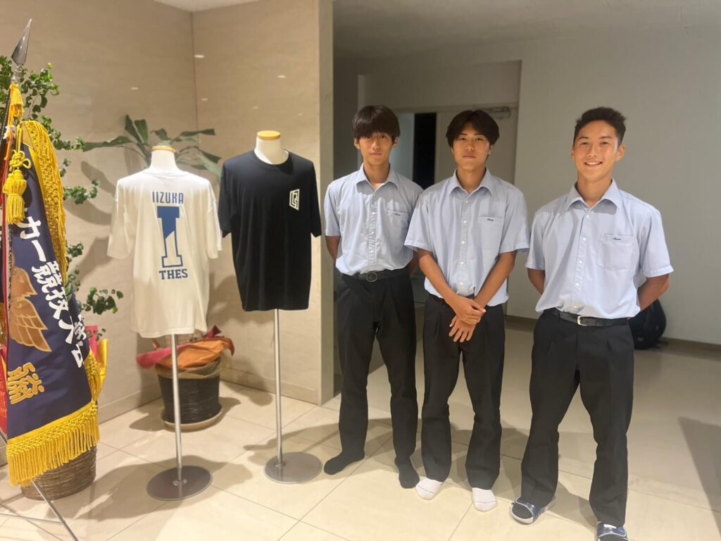 サッカー部を代表して登場したのは、キャプテンの吉田善(3年)、高野真音(2年)、冨澤琉胤(2年)の3人です。