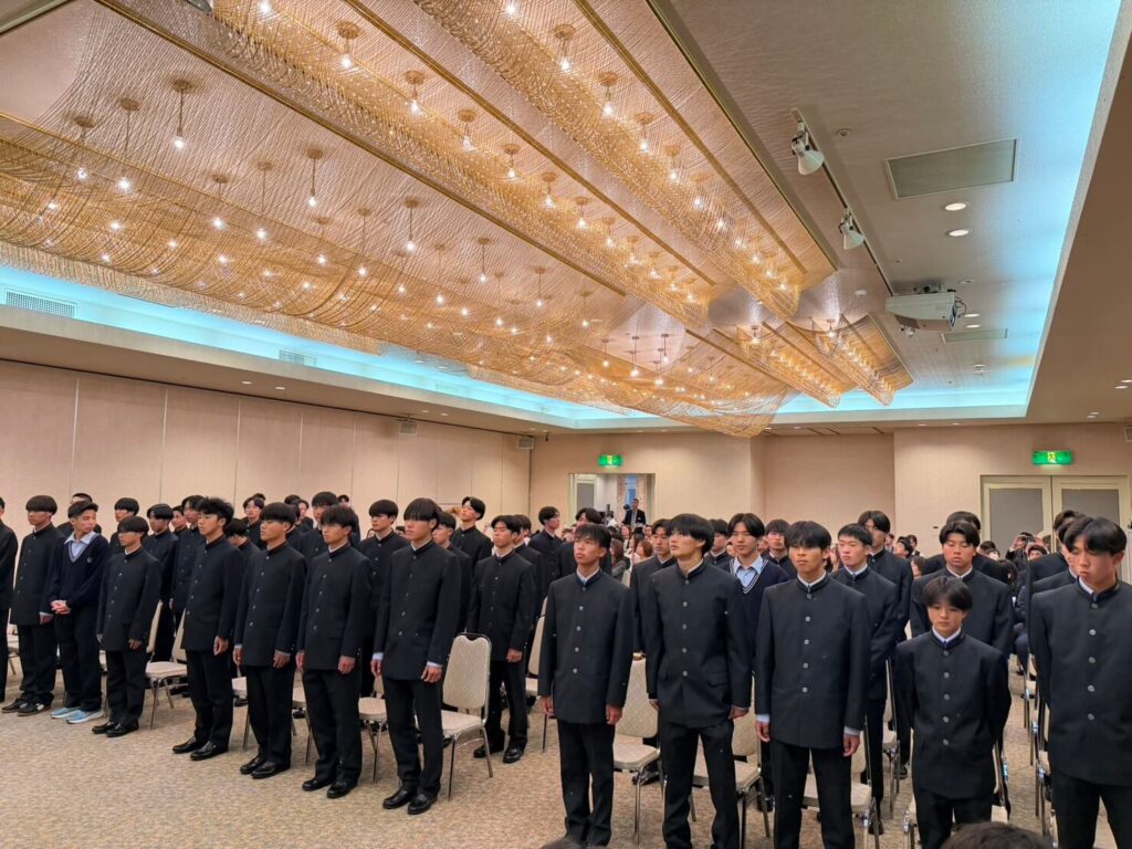 飯塚高校サッカー部は4月7日、同日に行われた令和8年度 第65回入学式に続いて、のがみプレジデントホテルにて第15期生入部式を実施し、新たに53名の1年生が加わりました。新戦力を迎え、チームは新シーズンの歩みを本格的に進めています。